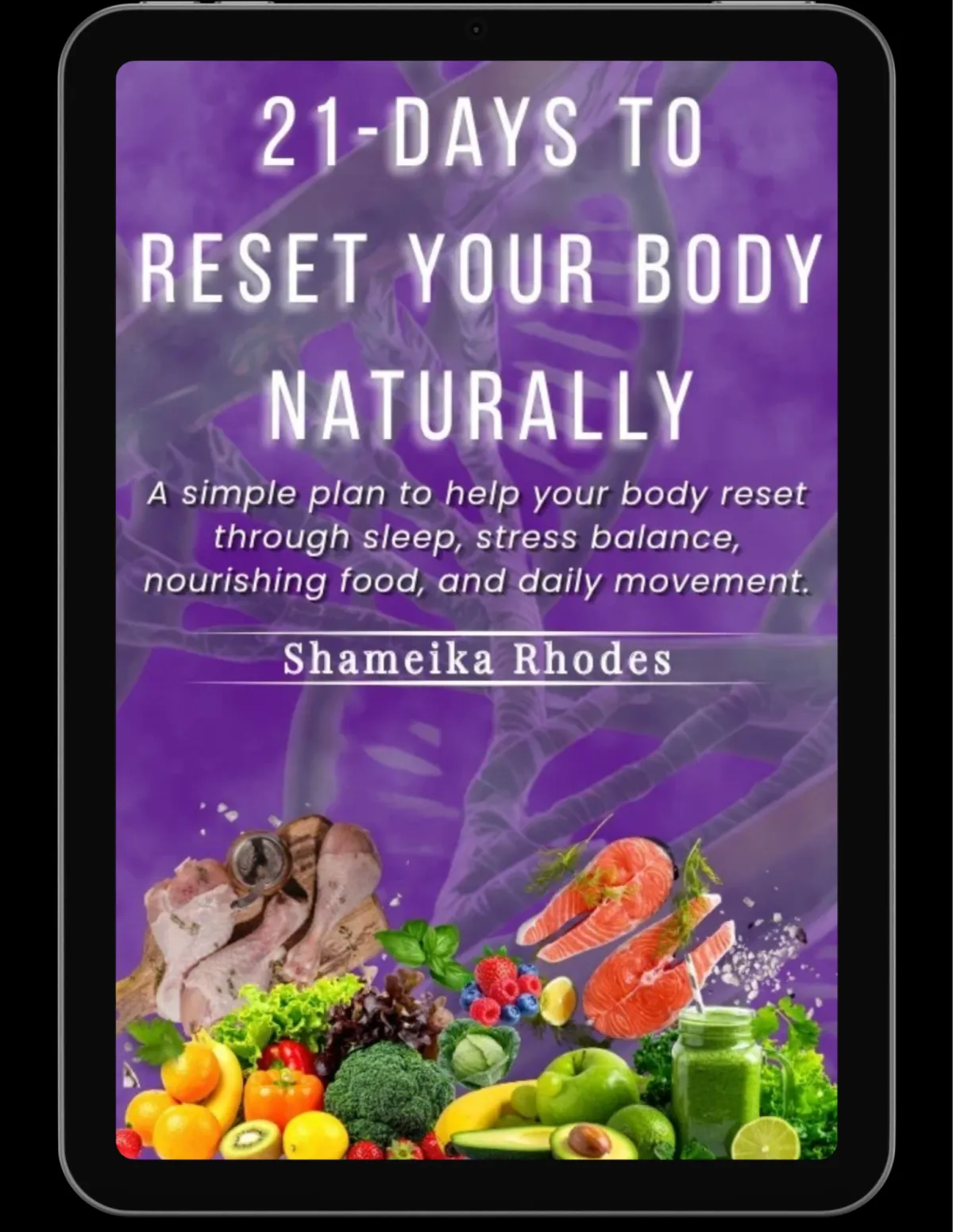 If the ebook shows you what to do, the 21-Day Reset Workbook helps you actually do it. This guided reset walks you step-by-step through applying the principles in real time — with daily structure around sleep, stress, nourishment, and movement so you’re not left trying to figure it out on your own.